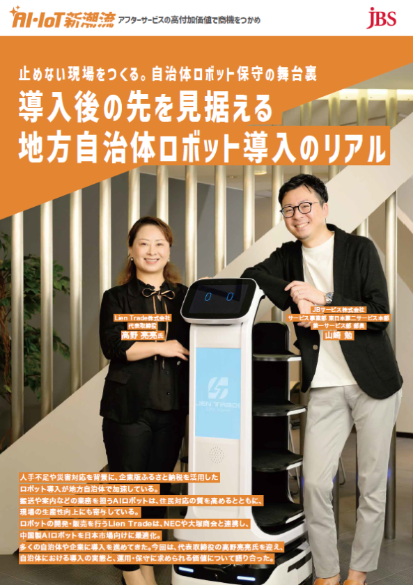 人手不足や災害対応を背景に、企業版ふるさと納税を活用したロボット導入が地方自治体で加速しています。搬送や案内などの業務を担うAIロボットは、住民対応の質を高めるとともに、現場の生産性向上にも寄与しています。 本ホワイトペーパーでは、ロボットの開発・販売を行うLien Trade代表取締役の高野亮亮氏と、JBサービスの山崎勉が、自治体における導入の実態と、運用・保守に求められる価値について語り合いました。 ロボットの社会実装・課題解決を実現するWebメディアを運営する株式会社クロスアーキテクツに取材いただきました。アフターサービスに課題をお持ちのご担当者様はぜひご覧ください。 |
